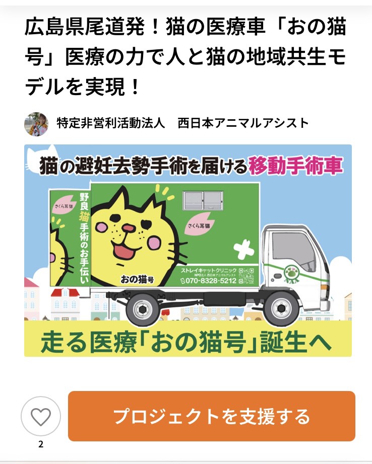 広島県尾道発!猫の医療車「おの猫号」医療の力で人と猫の地域共生モデルを実現!